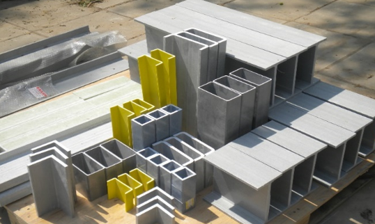 FRP拉擠型材是通過連續(xù)牽拉將纖維增強材料與熱固性樹脂基體從確定幾何形狀的加熱模具中擠出固化而成的制品,是制造復合材料構配件和建造復合材料結構中的重要結構類產品。這種連續(xù)的生產工藝采用縱向和橫向纖維增強,生產效率高、性能穩(wěn)定,為復合材料工程的設計和制造帶來了極大的便利和靈活性。